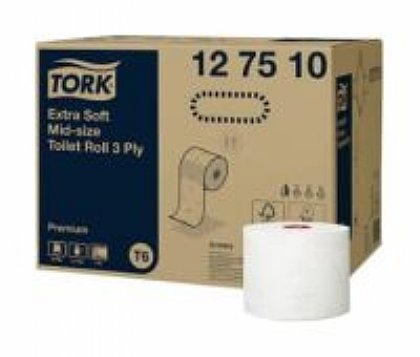 Tork Premium extra weiches midi Compact Toilettenpapier, 3lg., weiss, T6, 70lfm/Rolle, geprägt, Zellstoff, 27 Rollen im Karton